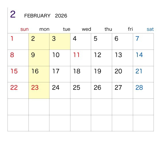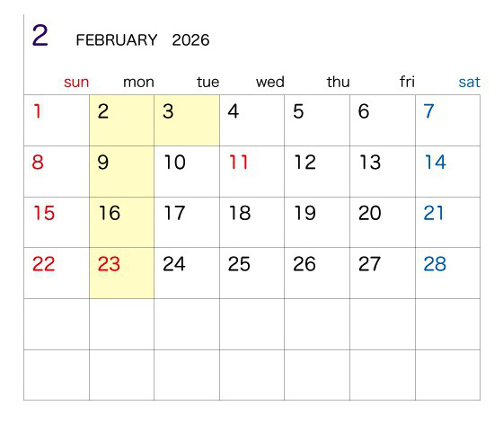 * 上記以外の臨時休業および臨時営業はおよそ一ヶ月前には修正致しますのでご了承ください。