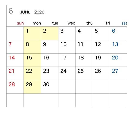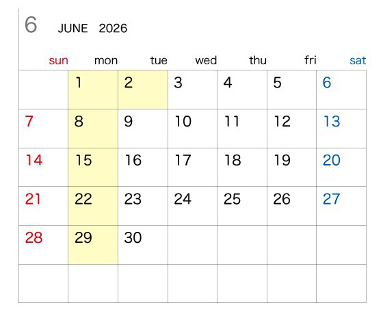 毎週:月曜日(12月は下記の年末を参照下さい)