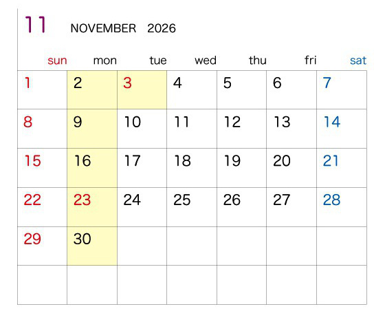 上記以外の臨時休業および臨時営業はおよそ一ヶ月前には修正致しますのでご了承ください。