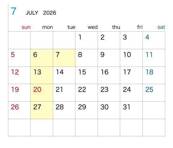 * 上記以外の臨時休業および臨時営業はおよそ一ヶ月前には修正致しますのでご了承ください。
